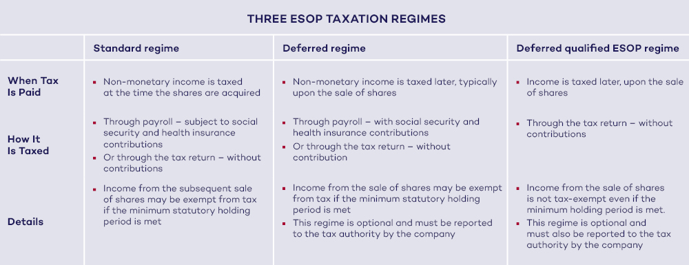 An amendment is currently making its way through the legislative process that introduces a specific regime for qualified ESOPs and modifies (or adds to) the existing rules. For the sake of clarity, however, let’s first look at how the system has worked so far.